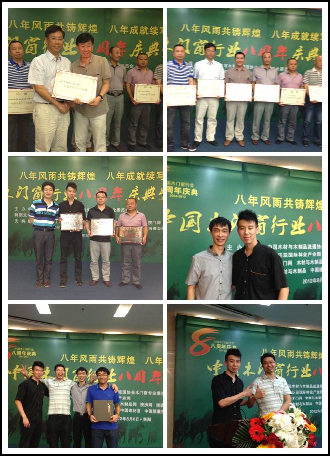 2012年8月6日,中國木門窗行業(yè)8周年慶典暨表彰大會在貴陽嘉華酒店如期舉行。中國木材與木制品流通協(xié)會會長劉能文,中國木材與木制品流通協(xié)會木門窗專業(yè)委員會會長張國林,中國木材與木制品流通協(xié)會木門窗專業(yè)委員會秘書長王永林,中國木材與木制品流通協(xié)會木門窗專業(yè)委員會常務(wù)副秘書長謝春林及各企業(yè)代表參加本次會議。佛山樹興木門廠作為協(xié)會的理事單位成員也參加了此次會議。會上,本廠榮獲協(xié)會頒發(fā)的“中國全木門十大品牌”稱號,可謂實至名歸。另外,樹興西安紅星店和寧波永達店更是榮獲協(xié)會頒發(fā)的“中國木門行業(yè)星級店”的光榮稱號。本廠產(chǎn)品“風(fēng)生水起”也榮獲2012中國木門(嘉寶莉杯)設(shè)計大賽“最受消費者歡迎款式”之稱。